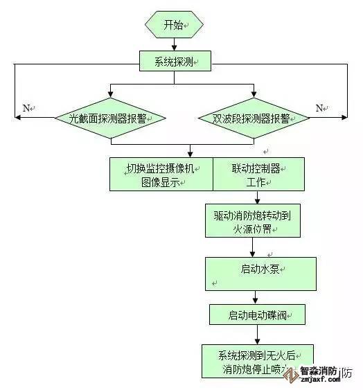 3、自動消防炮滅火系統(tǒng)工作流程