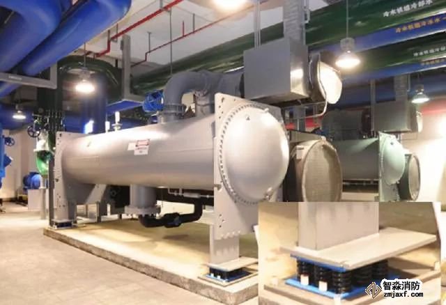 設(shè)備基礎(chǔ)必須經(jīng)過(guò)交接驗(yàn)收,其大小、平整度應(yīng)滿足設(shè)備安裝要求。風(fēng)機(jī)與基礎(chǔ)接觸處應(yīng)有橡膠減振墊或彈簧減振器等減振措施,且減振電或彈簧應(yīng)考慮動(dòng)荷載。