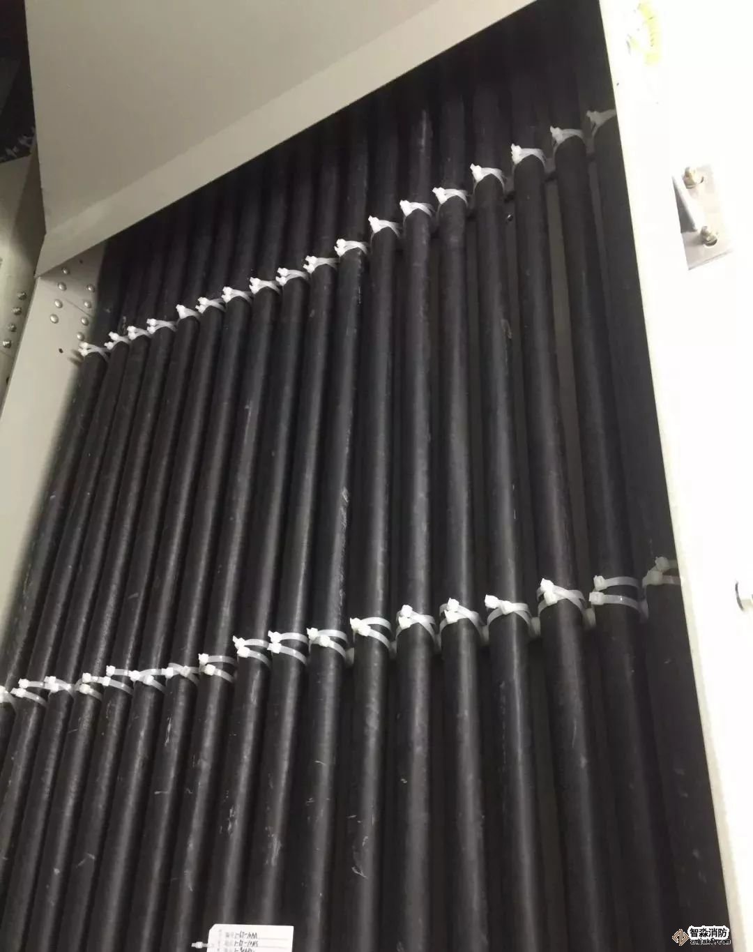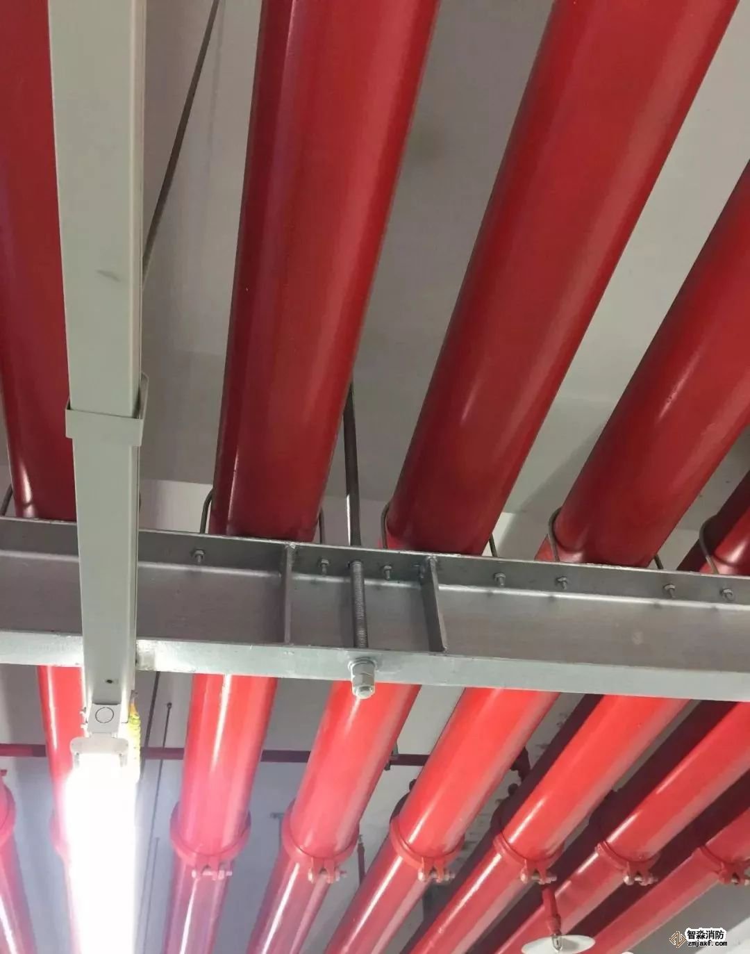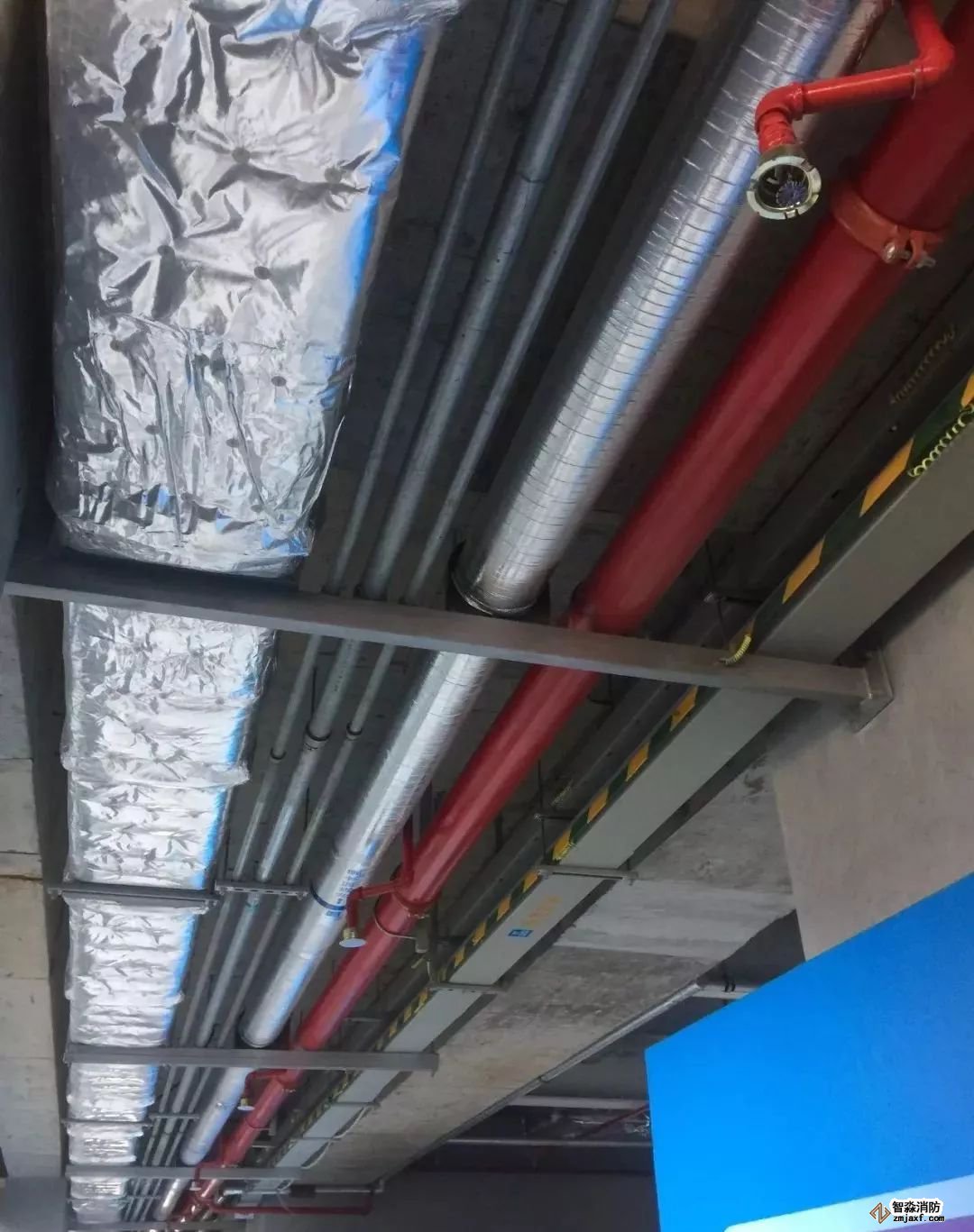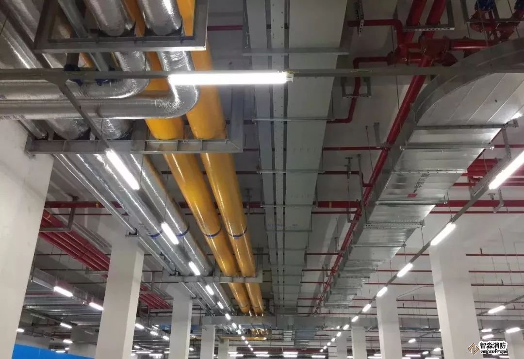 消防噴淋管道間距一致,標(biāo)識(shí)清楚、成排成線。