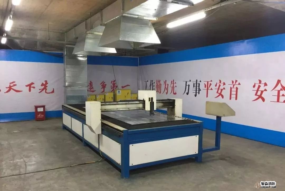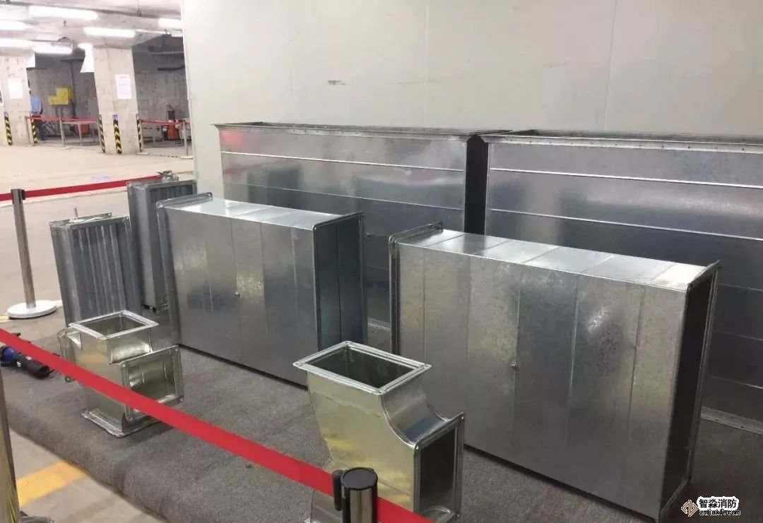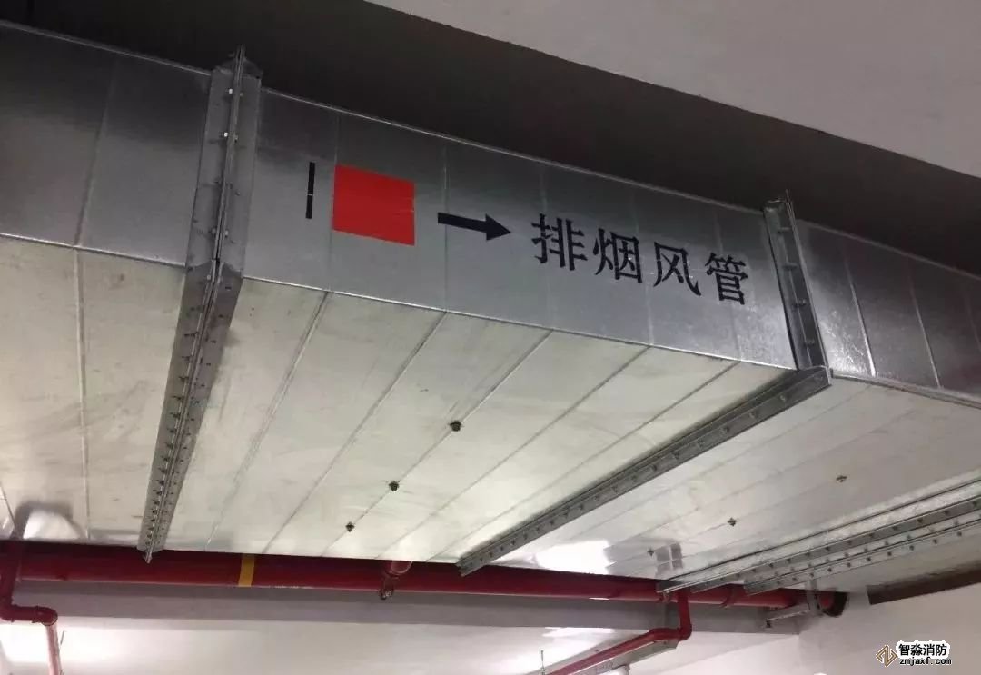 排煙管道安裝,法蘭采用倒角法蘭,美觀實(shí)用,標(biāo)識(shí)清楚。