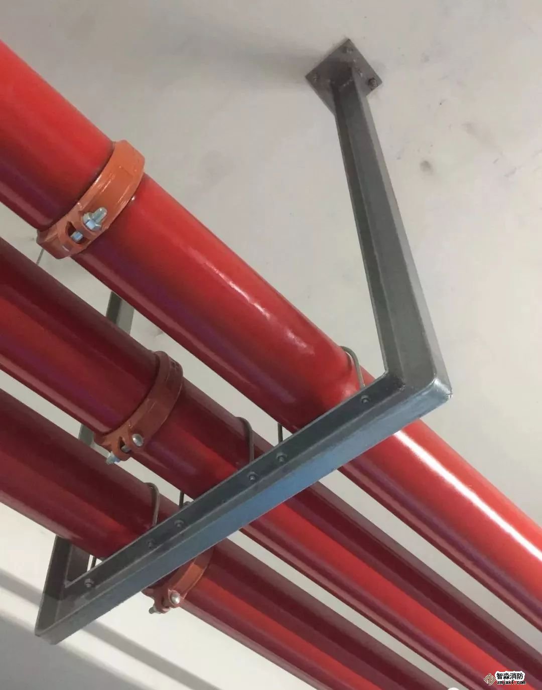 噴淋支管橫平豎直,標(biāo)識(shí)清楚、支架布置間距合理。