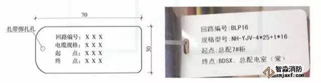 標識項目應直接打印在電纜標牌上,標題采用黑色黑體3號字,內(nèi)容采用4號字,成排掛牌方向應一致。