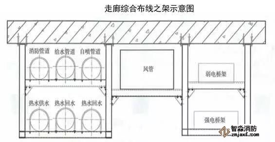 5、橋架和水管多層水平布置時,橋架應位于水管上方;高中壓在上,低壓在下,經(jīng)常檢修的在下;與吊頂表面末端設施連接的管線宜貼近吊頂,減少交叉;