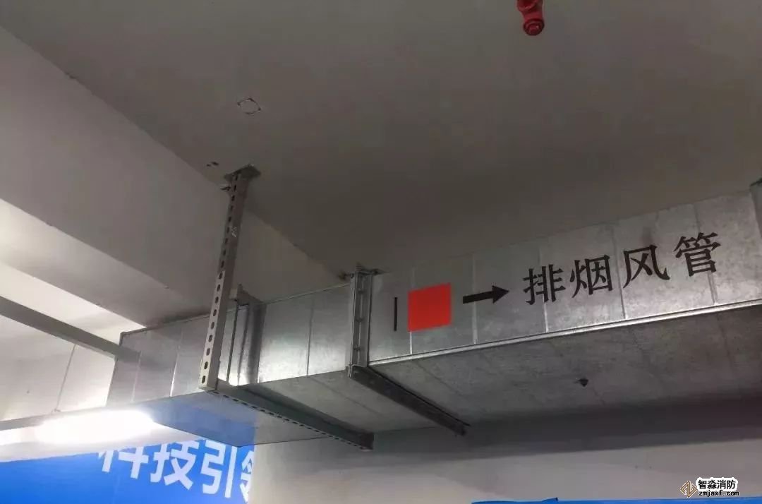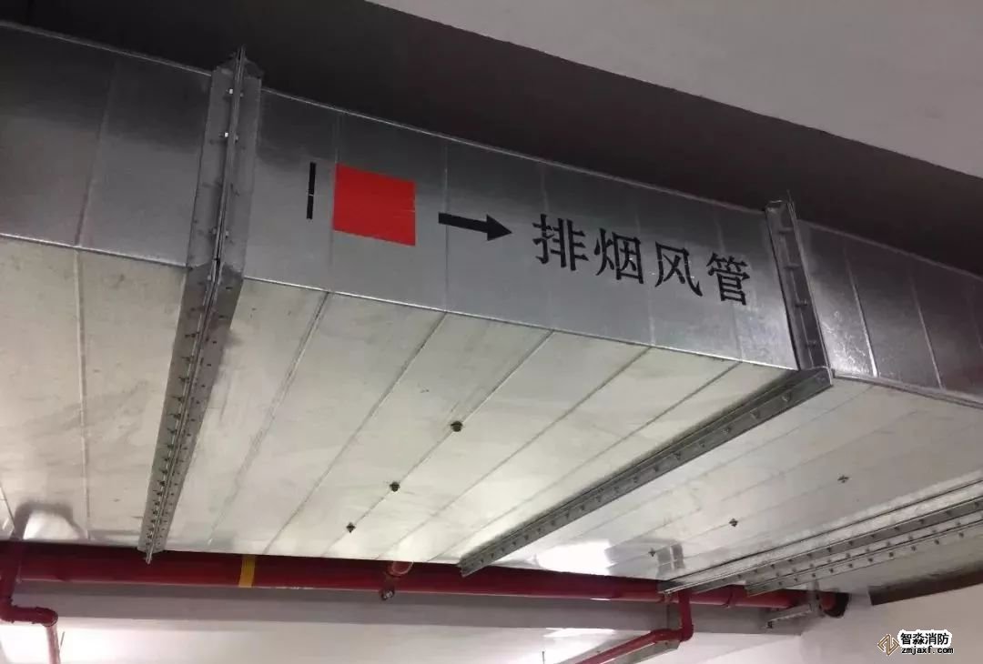 排煙管道安裝,法蘭采用倒角法蘭,美觀實(shí)用,標(biāo)識(shí)清楚。