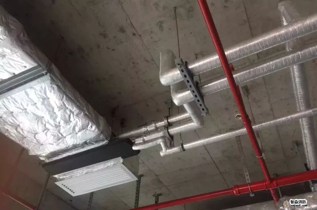 空調(diào)水管道,坡度正確,支架布置合理,保溫整齊美觀。
