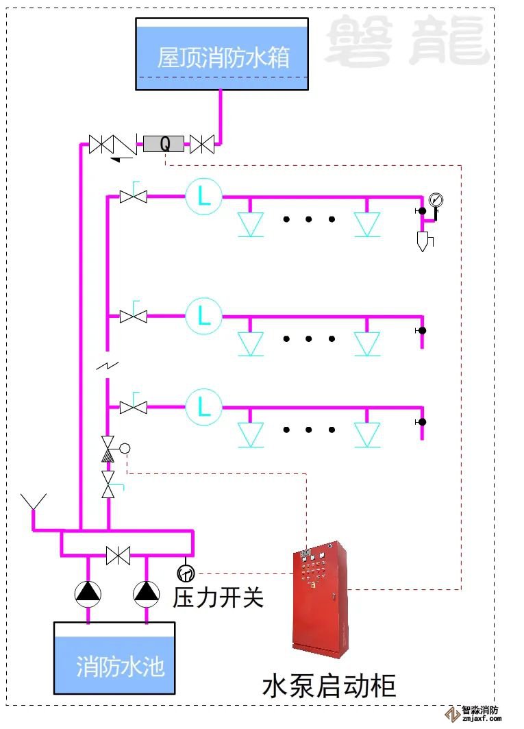 對(duì)于這類系統(tǒng),消防水泵出水干管上應(yīng)設(shè)置壓力開關(guān),高位消防水箱出水管上應(yīng)設(shè)置流量開關(guān),存在問(wèn)題及解決措施:
