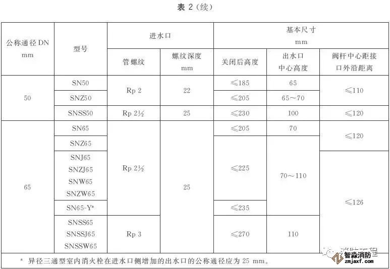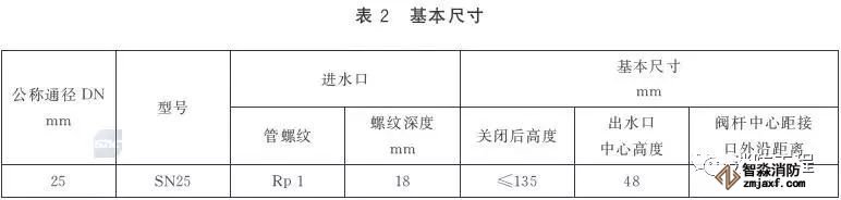 室內(nèi)消火栓的進(jìn)水口應(yīng)為圓柱管螺紋,其進(jìn)水口的螺紋尺寸應(yīng)符合表3的規(guī)定;閥桿與閥桿螺母應(yīng)為梯形螺紋。