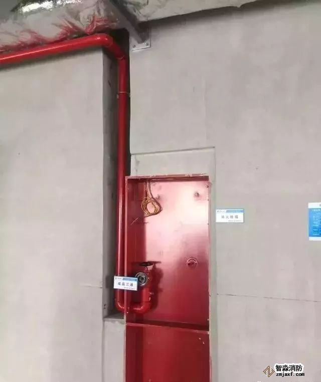 消火栓箱安裝,箱體外填塞密實,管道安裝垂直,栓頭距地1.1米。