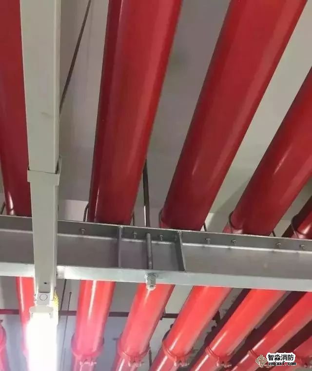 消防噴淋管道間距一致,標識清楚、成排成線。