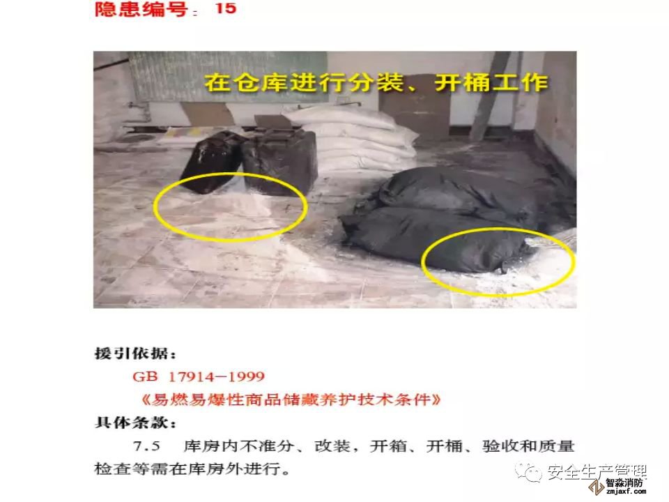 • 企業(yè)現(xiàn)場管理極其混亂,槽車運輸苯乙烯到廠后自行分裝到塑料大桶(1 噸/桶),在沒有控溫措施的甲類倉庫超量堆垛存放,使用塑料大桶盛裝苯乙烯在包裝物材質(zhì)、容量、儲存條件等均嚴重違反《工業(yè)用苯乙烯》(GB/T3915-2011)標準規(guī)定。生產(chǎn)車間內(nèi)大量存放原料及產(chǎn)品,倉庫超量儲存問題突出。