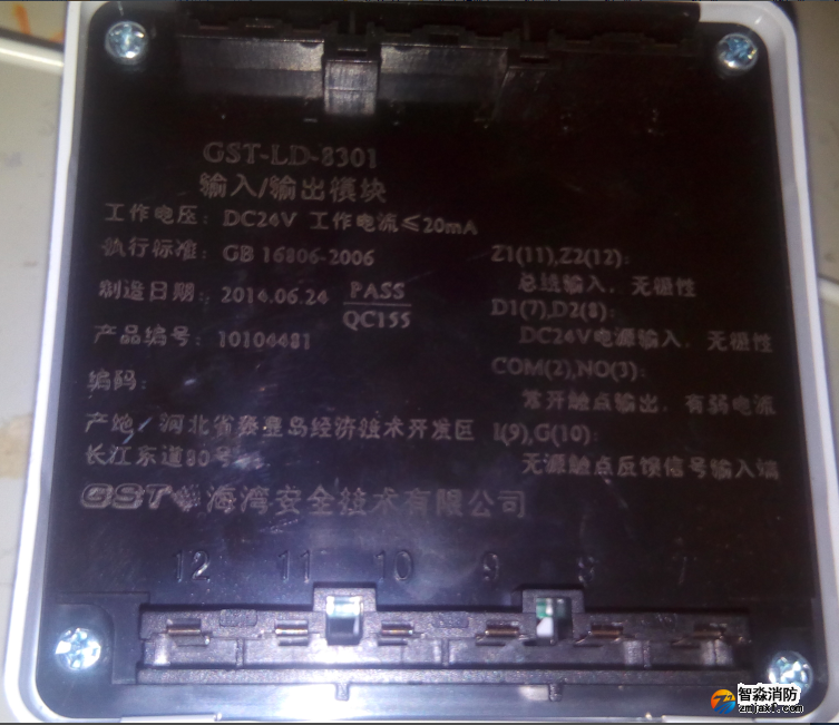 GST-LD-8301模塊的外形尺寸及結構與GST-LD-8319輸入模塊相同,安裝方法也相同,其對外端子示意圖如下: