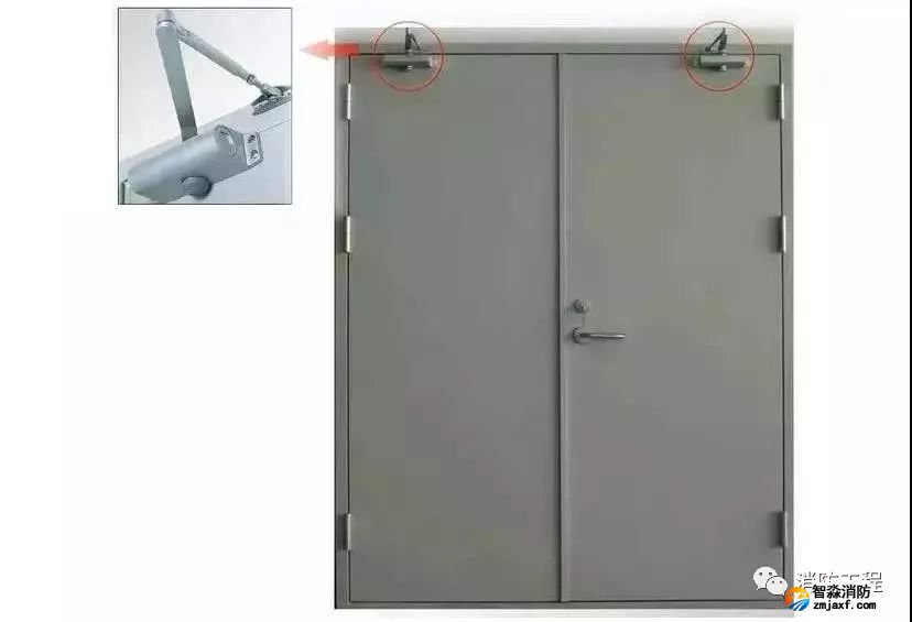 雙扇防火門應(yīng)具有按順序自行關(guān)閉的功能,通過(guò)順序器來(lái)實(shí)現(xiàn)。