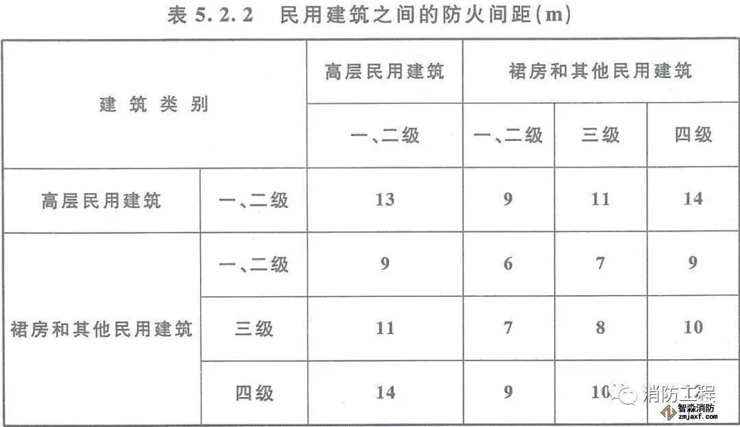 單、多層戊類廠房之間及與戊類倉(cāng)庫(kù)的防火間距可按本表的規(guī)定減少2m,與民用建筑的防火間距可將戊類廠房等同民用建筑按本規(guī)范第5.2.2條的規(guī)定執(zhí)行。