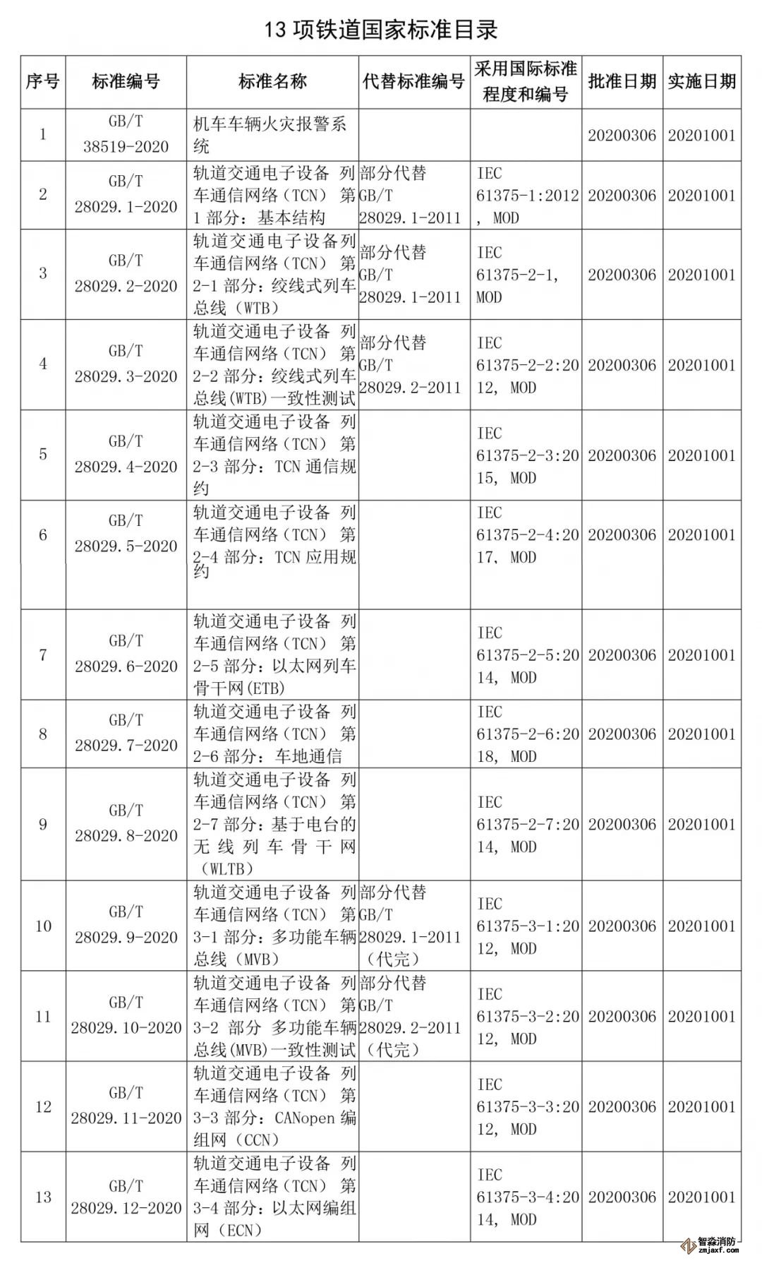 《機(jī)車(chē)車(chē)輛火災(zāi)報(bào)警系統(tǒng)》等13項(xiàng)鐵道國(guó)家標(biāo)準(zhǔn)正式頒布
