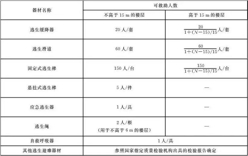 (2)其他逃生避難器材的配備樓層(高度)參照國家指定質(zhì)量檢驗機(jī)構(gòu)出具的檢驗報告確定。