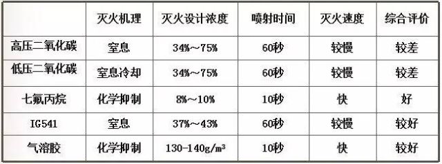 工程應用時,應綜合考慮:滅火可靠性、環(huán)保性、對設備和人員的安全性、工程造價、技術成熟性等因素,選擇最佳的滅火系統(tǒng)。
