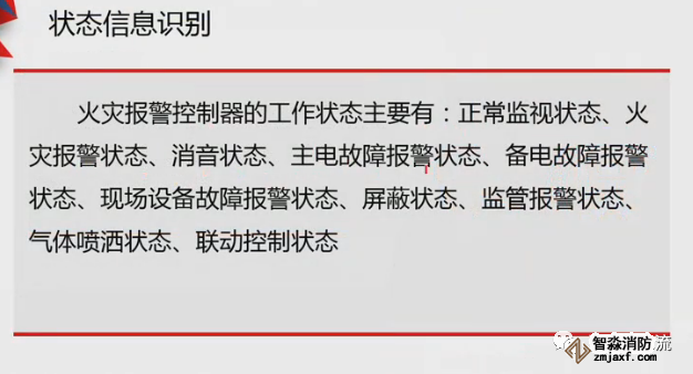 顯示屏分上、下半屏,上半屏為火警、監(jiān)管、故障、屏蔽等屬于報警信息,下半屏為啟動、反饋、動作等屬于聯(lián)動信息