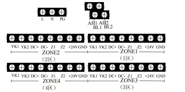 +24V、GND:各區(qū)的輔助電源輸出端子,為現(xiàn)場的系統(tǒng)設(shè)備如聲光警報器、氣體噴灑指示燈和輸出模塊供電。