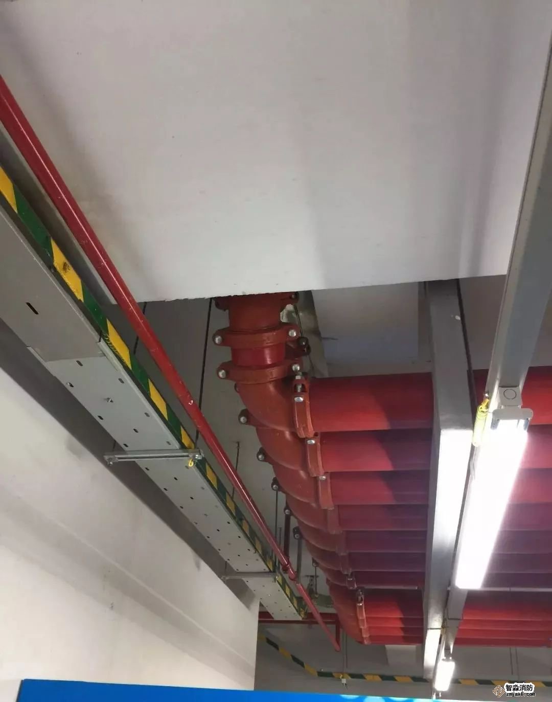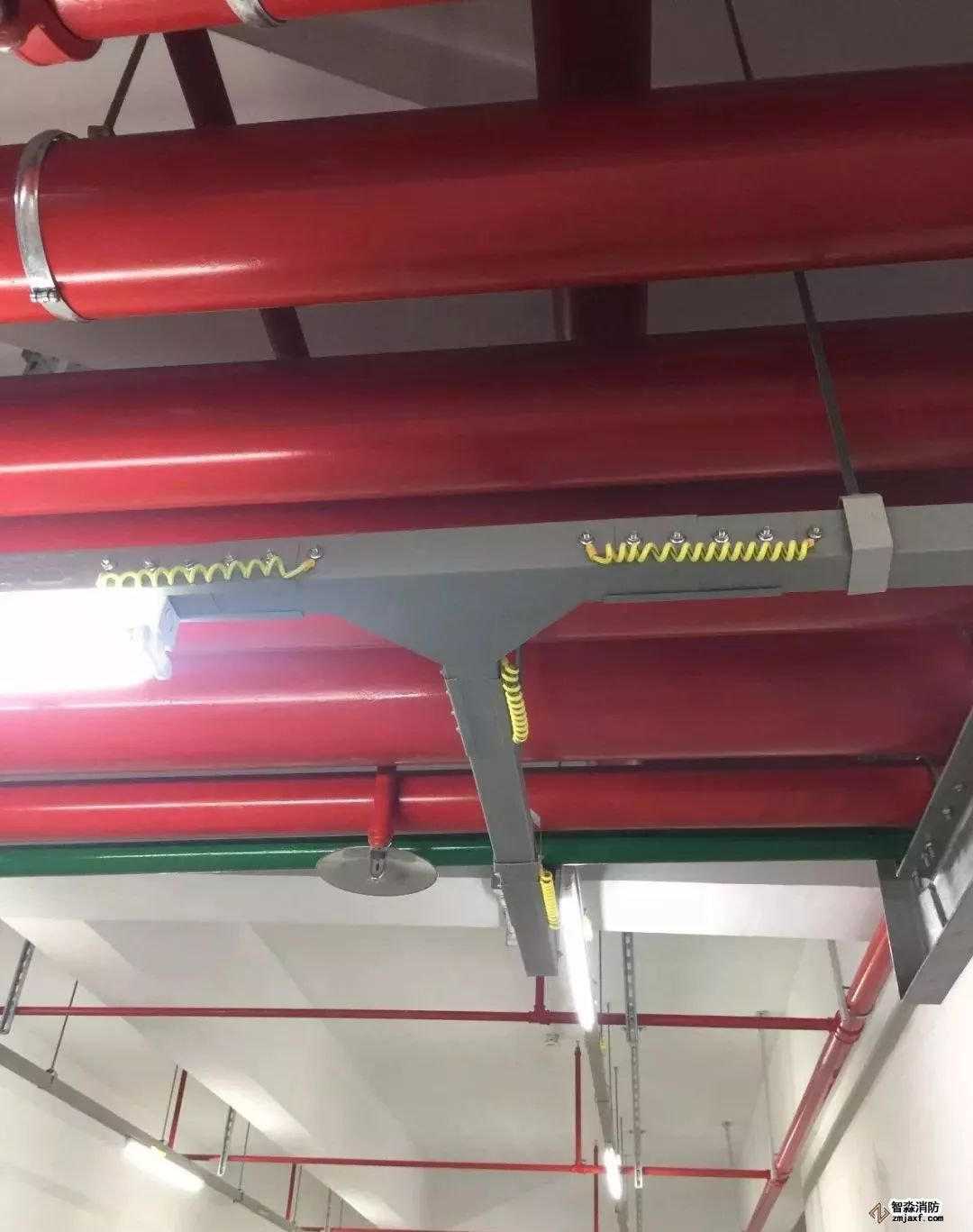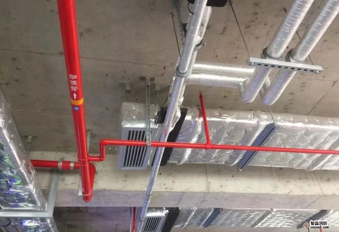 消防噴淋管道間距一致,標(biāo)識(shí)清楚、成排成線。