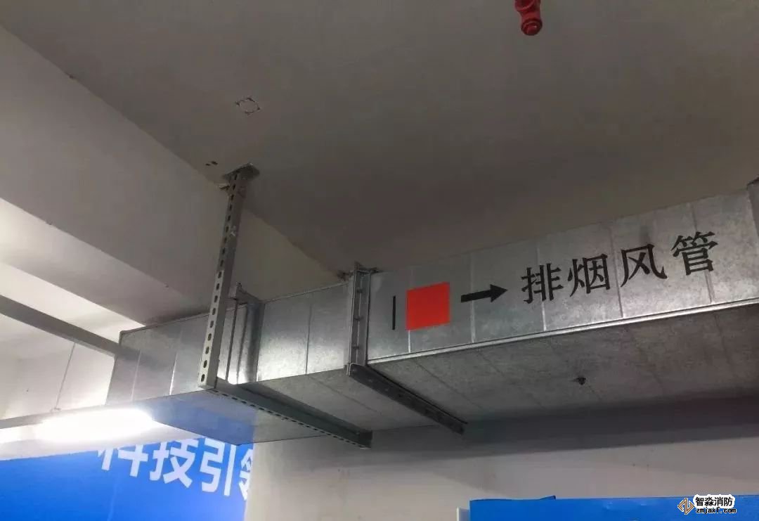 排煙管道安裝,法蘭采用倒角法蘭,美觀實(shí)用,標(biāo)識(shí)清楚。