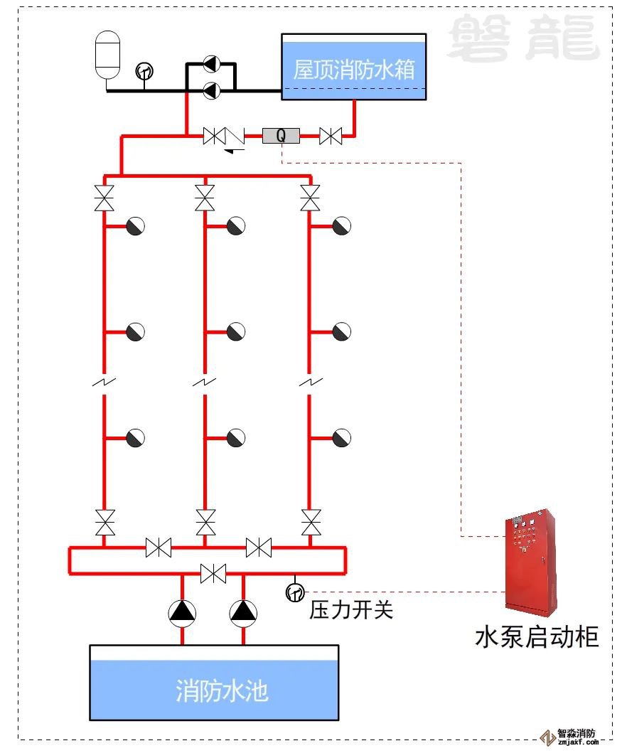 對(duì)于這類系統(tǒng),消防水泵出水干管上應(yīng)設(shè)置壓力開關(guān),高位消防水箱出水管上應(yīng)設(shè)置流量開關(guān),存在問(wèn)題及解決措施: