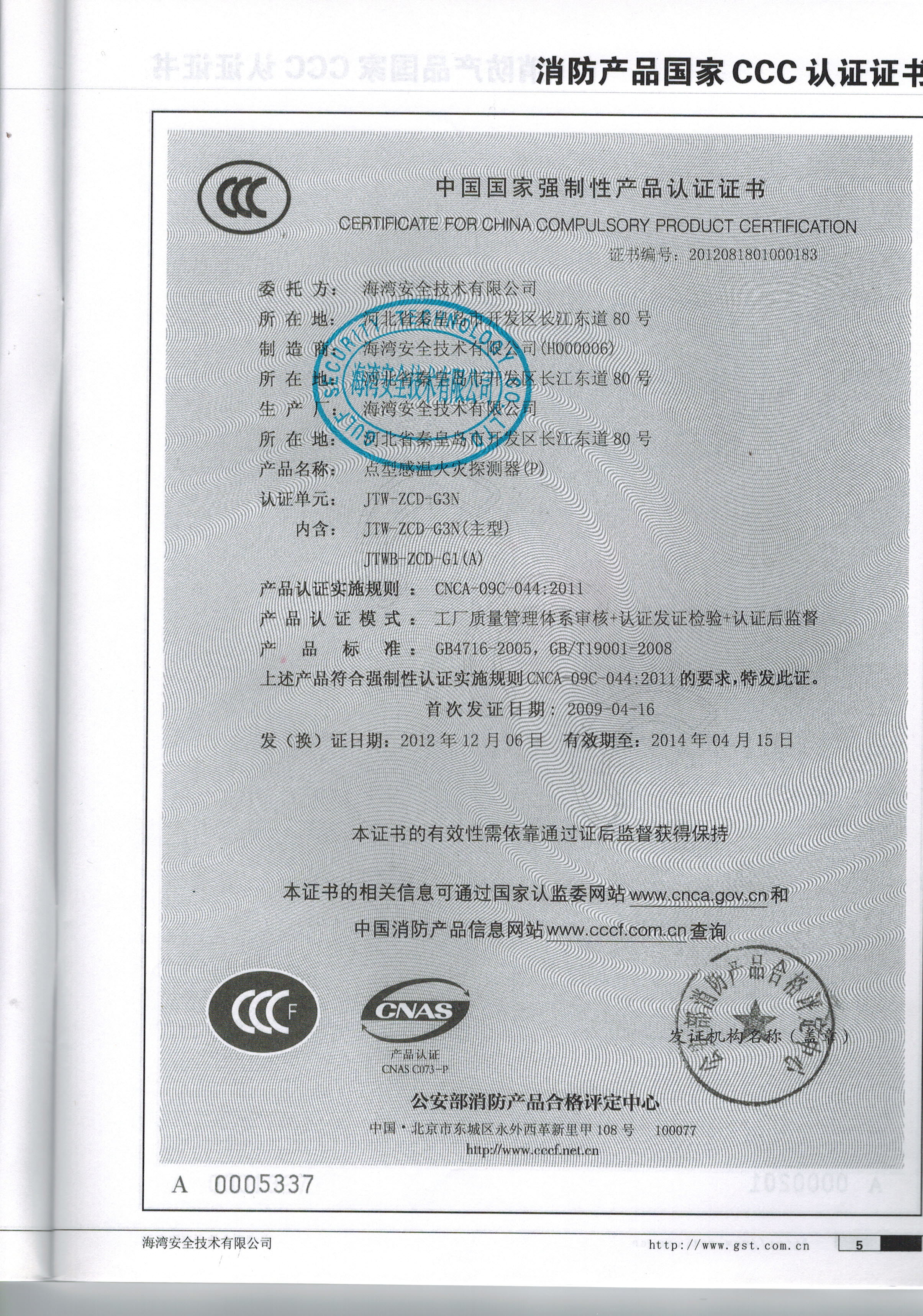 《強制性產品認證實施規(guī)則 火災報警產品》CNCA-C18-01:2014中8.1條明確規(guī)定:認證證書有效期5年,屆滿可以延續(xù)(有效期順延5年),只需獲證后監(jiān)督結果合格,即可直接換發(fā)新證書,不需要重新進行產品檢驗。
