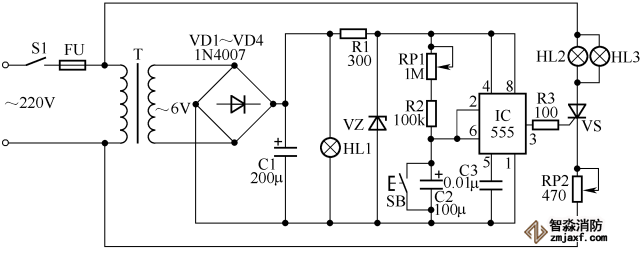 將兩個功率相同的110V白熾燈接在220V電源上使用的電路