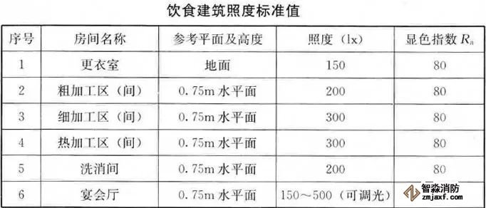 (2)小型飲食建筑的廚房區(qū)域、用餐區(qū)域,宜設(shè)置備用照明,其照度不應(yīng)低于10lx;