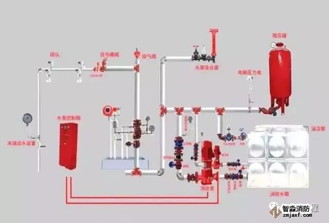 (1)消防給水基礎(chǔ)設(shè)施:包括消防水池、消防水泵、消防水箱、增壓穩(wěn)壓設(shè)備等。該設(shè)施的主要任務(wù)是為系統(tǒng)儲(chǔ)存并提供滅火用水。