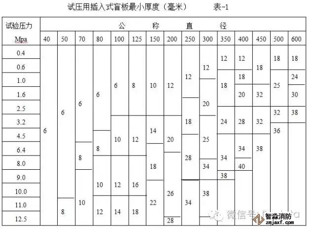 5.5 試壓盲板的選取,根據(jù)壓力及管徑按表-1選取。