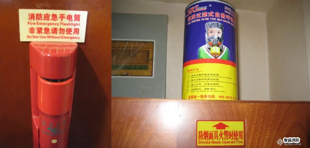 設(shè)置要求:在高層旅館等設(shè)置的應(yīng)急手電、防煙面具應(yīng)設(shè)置相關(guān)提示標(biāo)牌。