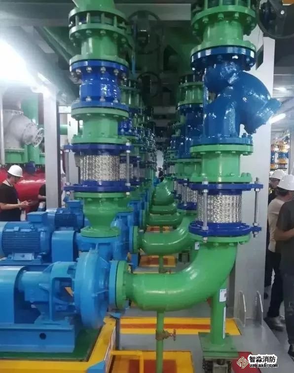 消防噴淋管道間距一致,標識清楚、成排成線。
