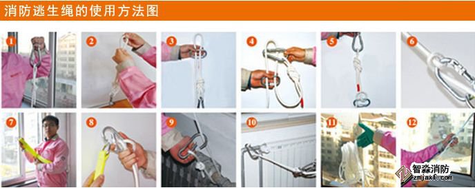 1.選取固定點。將逃生繩帶或逃生軟梯一端固定在牢固的物體上,例如結(jié)實的窗戶,桌腿,暖氣管上,然后用力拉下看是否能夠承受自身的重量