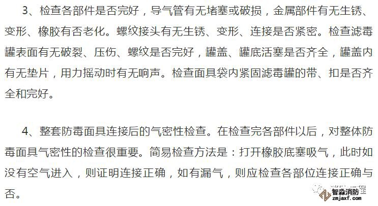 2、使用前應(yīng)檢查部件和結(jié)合部的氣密性,若發(fā)生漏氣應(yīng)查明原因。例如,面罩選擇不合適或佩戴不正確;橡膠主體有破損;濾毒罐(盒)破裂;面罩的部件連接松動等等。面具保持良好的氣密狀態(tài)才能使用。