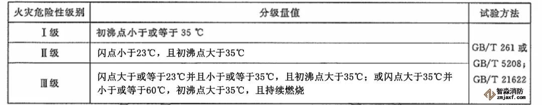 易燃液體火災(zāi)危險(xiǎn)性分級(jí)方法見下表: