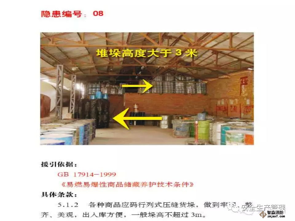 • 企業(yè)現(xiàn)場管理極其混亂,槽車運輸苯乙烯到廠后自行分裝到塑料大桶(1 噸/桶),在沒有控溫措施的甲類倉庫超量堆垛存放,使用塑料大桶盛裝苯乙烯在包裝物材質(zhì)、容量、儲存條件等均嚴重違反《工業(yè)用苯乙烯》(GB/T3915-2011)標準規(guī)定。生產(chǎn)車間內(nèi)大量存放原料及產(chǎn)品,倉庫超量儲存問題突出。