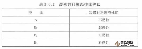 3.0.2 裝修材料按其燃燒性能應(yīng)劃分為四級。
