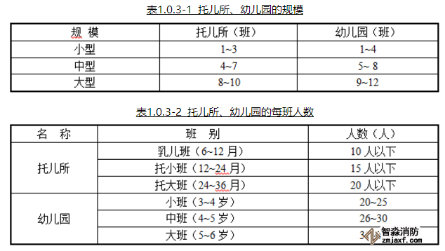 八、托兒所、幼兒園的規(guī)模應(yīng)符合表1.0.3-1的規(guī)定,托兒所、幼兒園的每班人數(shù)宜符合表1.0.3-2的規(guī)定。(1.0.3