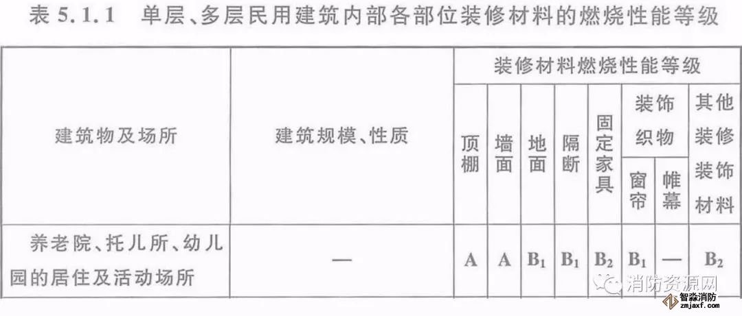 一、當(dāng)設(shè)置在單層、多層民用建筑時(shí),內(nèi)部各部位裝修材料的燃燒性能等級(jí),不應(yīng)低于《建筑內(nèi)部裝修設(shè)計(jì)防火規(guī)范》5.1.1的規(guī)定。