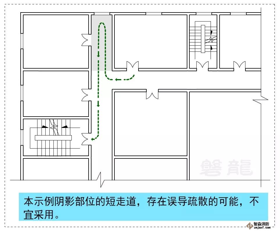 四、沒有安全出口的回形(環(huán)形)疏散路線,不應(yīng)采用: