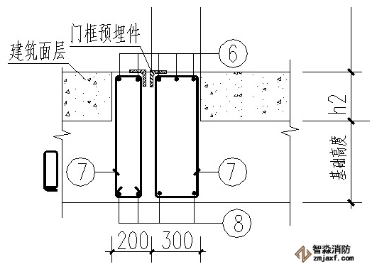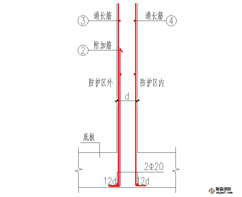 人防墻體鋼筋:豎向鋼筋應伸至板頂部,未滿足者,應加插倒U形鋼筋,鋼筋規(guī)格同原設計,長度為搭接長度Lld。