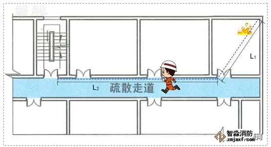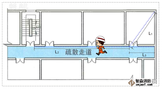 疏散走道是用于人員疏散通行至安全出口或相鄰防火分區(qū)的走道,疏散走道的兩側(cè)隔墻和樓板應(yīng)滿(mǎn)足相應(yīng)建筑耐火等級(jí)的燃燒性能和耐火極限要求,疏散走道不能有可燃物,也不能作為工作或作業(yè)場(chǎng)所。因此,通常情況下,疏散走道不會(huì)是火災(zāi)發(fā)生部位,人員也不會(huì)在走道過(guò)多逗留。另一方面,疏散走道兩側(cè)房間內(nèi)的疏散距離,也從側(cè)面限制了疏散走道的長(zhǎng)度。