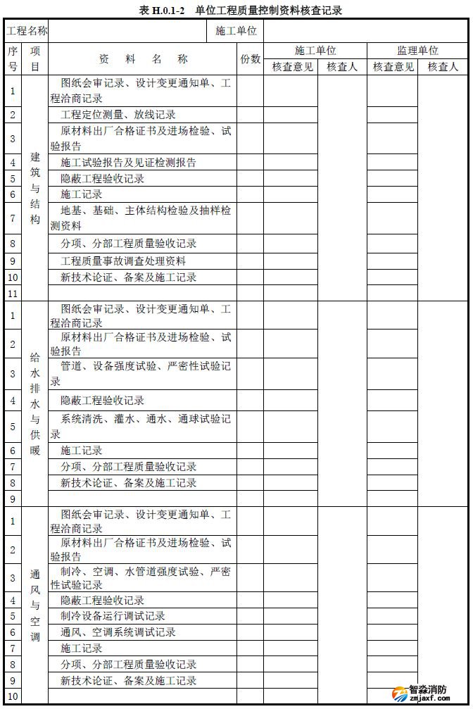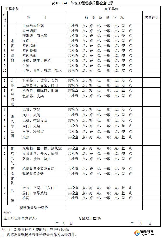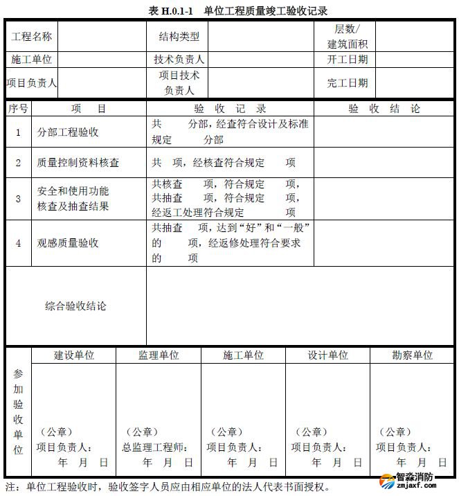 單位工程質(zhì)量竣工驗(yàn)收記錄、質(zhì)量控制資料核查記錄、安全和功能檢驗(yàn)資料核查及主要功能抽查記錄、觀感質(zhì)量檢查記錄應(yīng)按《建筑工程施工質(zhì)量驗(yàn)收統(tǒng)一標(biāo)準(zhǔn)》附錄H填寫。