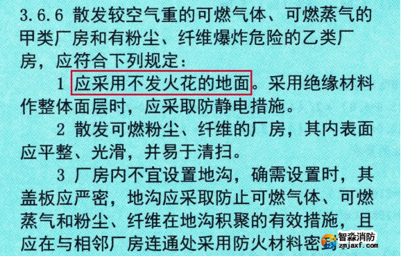 但是不發(fā)火花的地面有什么要求呢?我們來看另外一本規(guī)范的規(guī)定。