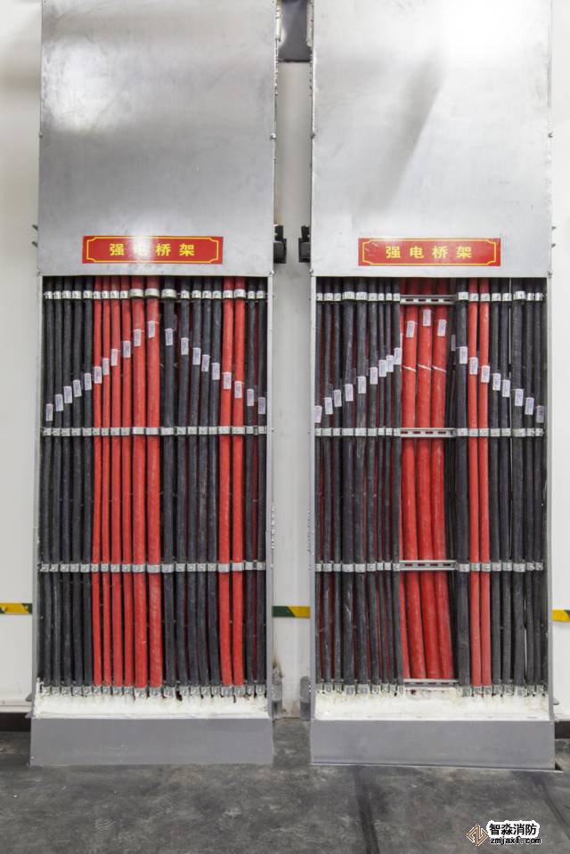 豎向橋架內(nèi)電纜排布有序,標(biāo)識(shí)清晰,防火封堵到位。