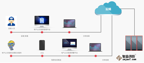 3、 通過云平臺(tái)對(duì)存儲(chǔ)數(shù)據(jù)的分析及判斷,及時(shí)掌握線路動(dòng)態(tài)運(yùn)行存在的用電安全隱患,及時(shí)發(fā)現(xiàn)電氣隱患,預(yù)防火災(zāi)發(fā)生,提高企業(yè)用電安全管理水平;