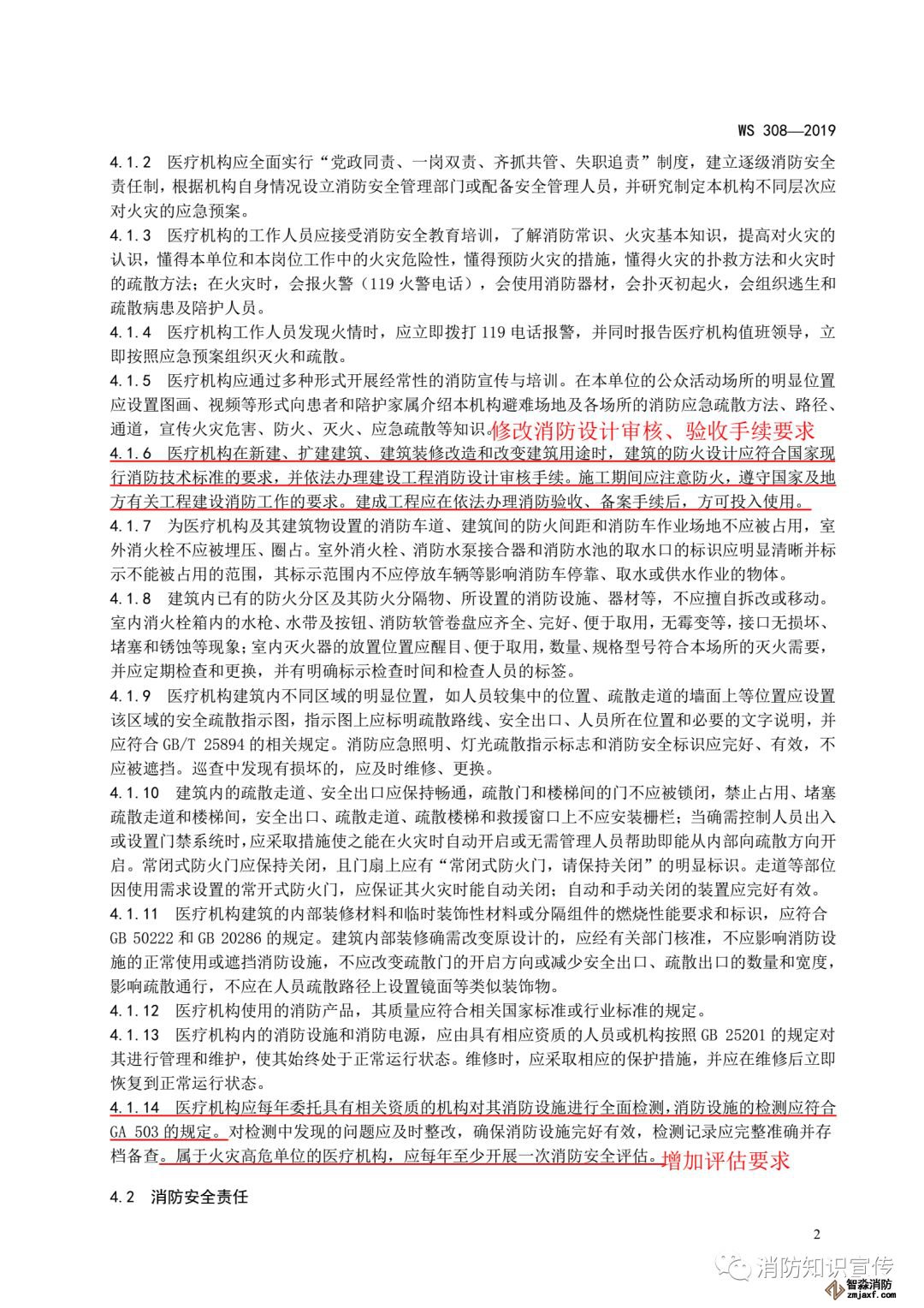 ——增加了屬于高危單位的醫(yī)療機(jī)構(gòu)開展消防安全評估的要求(見4.1.14);