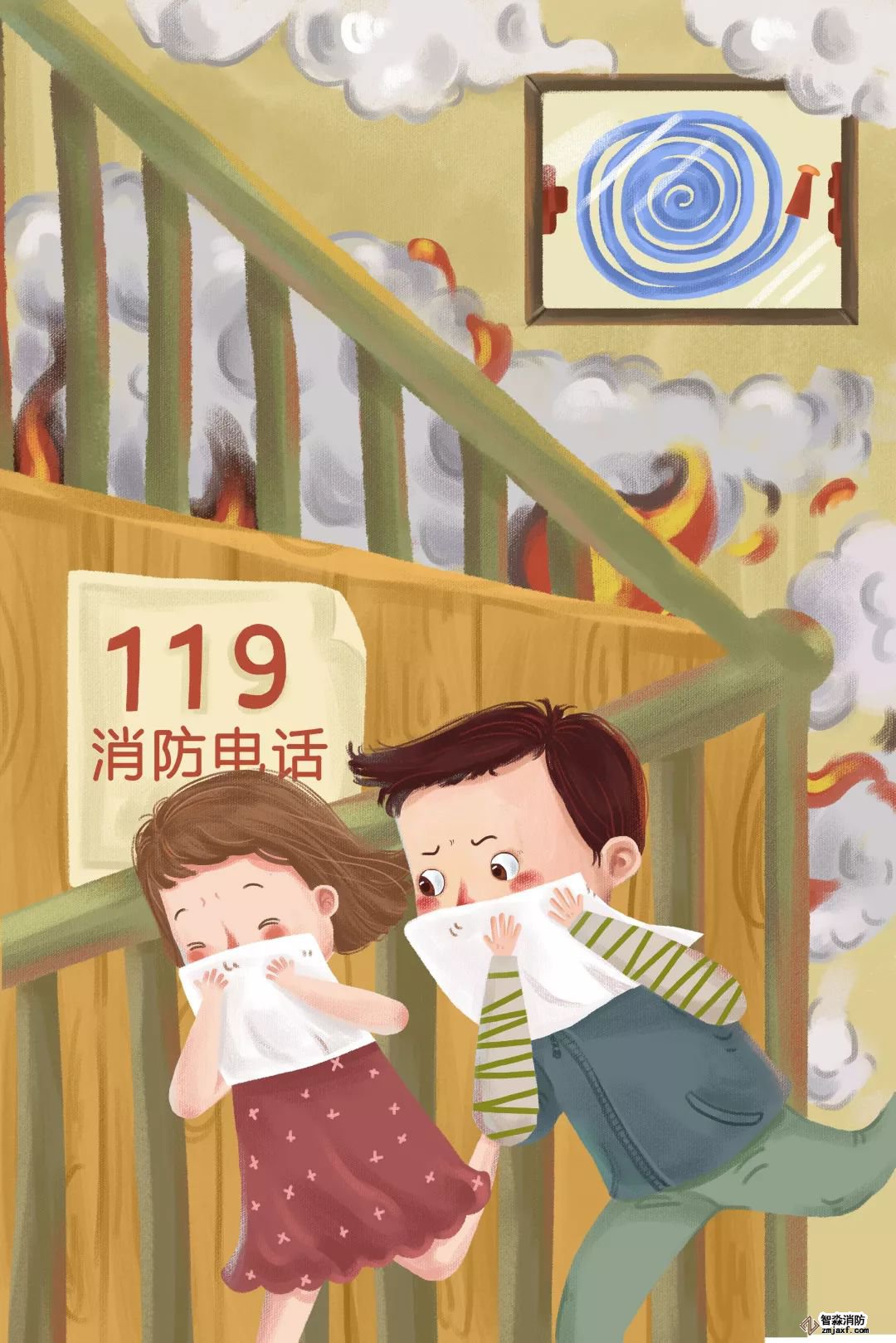 當(dāng)大火和濃煙已經(jīng)封閉通道,應(yīng)關(guān)閉房門內(nèi)所有門窗,防止空氣對(duì)流,延遲火焰蔓延的速度,并且用濕布條堵住門窗的縫隙,也可同時(shí)用水澆在門窗上降低它的溫度,等待救援。