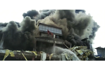 廢棄工廠(chǎng)突發(fā)火災(zāi)致兩名施工人員被困 消防緊急救援