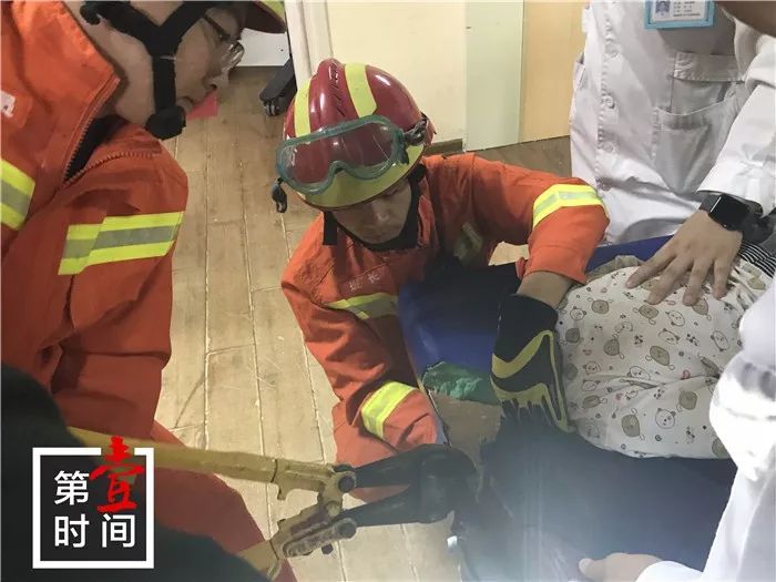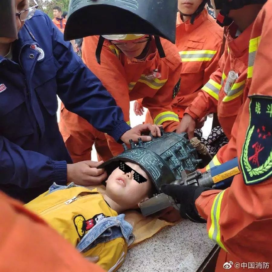 原來是醫(yī)院里面一個按摩床,小孩頭卡在床洞內(nèi)....